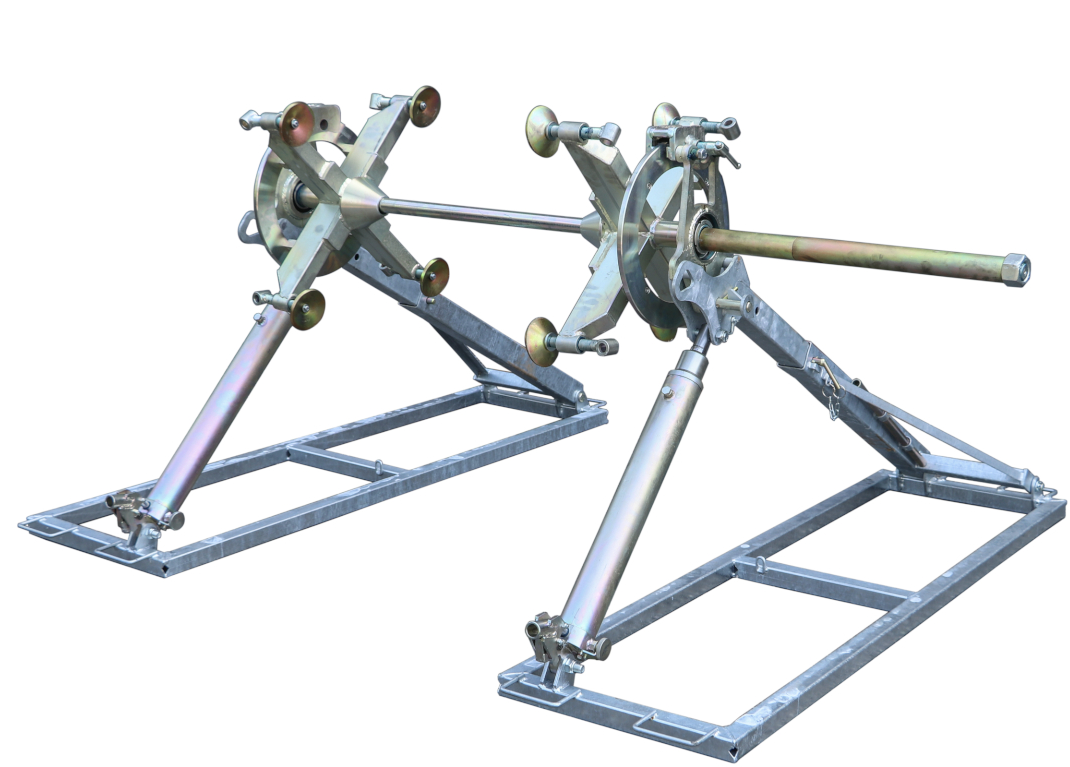 Hyr trumbock i stål med hydrauliska bromsar. Kapacitet upp till 7 ton och en axel som tar trummor med storlek K10-K28